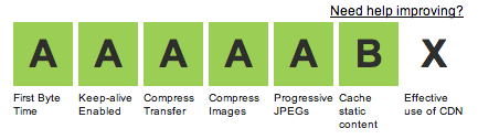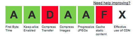 The two main fixes we are going to do here are Apache configurations. Well, I’m not exactly an infrastructure guru, but luckily the great folks working on HTML5 Boilerplate are! We are going to grab a few pieces out of their .htaccess file, and fix our low ratings from earlier.